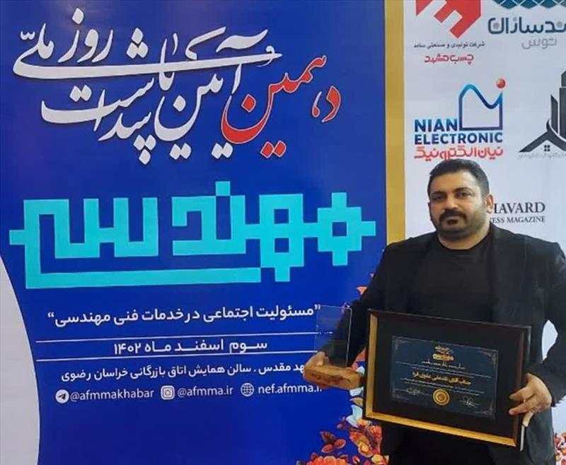 نقدعلی علوی فرد مدیرعامل شرکت پارس تکین آهن از شرکت‌های عضو مرکز فناوری جامع پارک علم و فناوری خراسان، رتبه اول دهمین آئین پاسداشت روز ملی مهندس را کسب کرد.