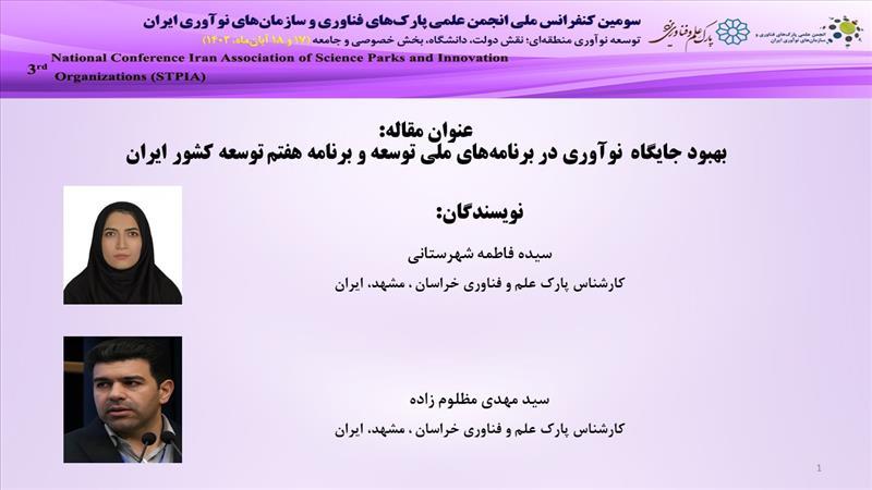 مقاله بهبود جایگاه نوآوری در برنامه‌های ملی توسعه و برنامه هفتم توسعه ایران توسط همکاران پارک علم و فناوری خراسان، در سومین کنفرانس ملی انجمن عملی پارک‌های فناوری و سازمان‌های نوآوری ایران ارائه شد.