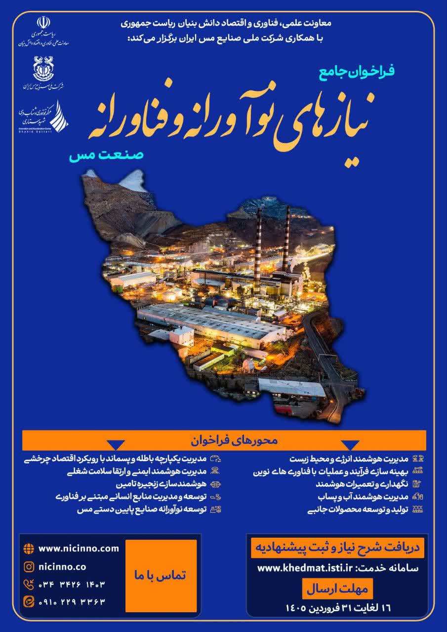 • فراخوان جامع نیازهای نوآورانه و فناورانه صنعت مس